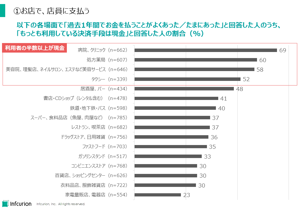 利用者の半数以上が現金をもっとも利用している業種が4つありました: