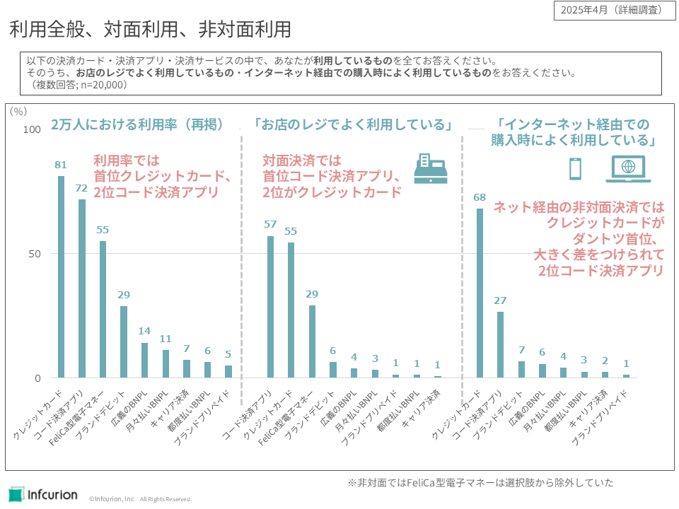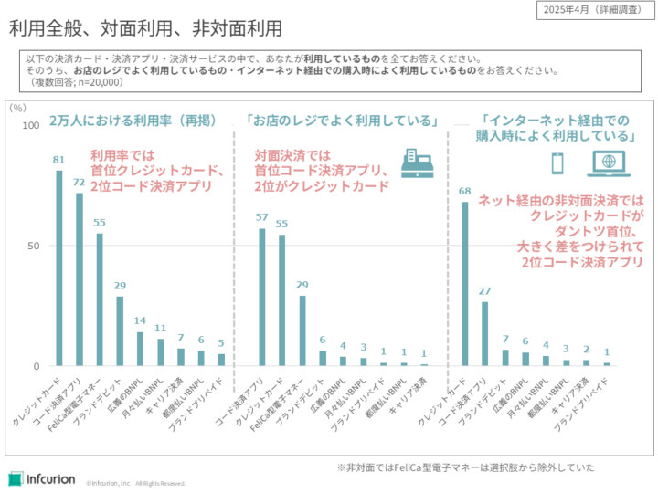 関連ニュースリリース:「コード決済アプリ利用率が過去最高更新も、対面・非対面で利用動向に二極化 若年層がコード決済アプリ・デビットカード利用を牽引、クレジットカードはタッチ決済が主流へ インフキュリオン、『決済動向2025年調査』結果を発表」、2025年6月17日