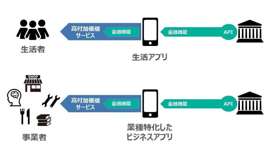 図4 生活アプリとビジネスアプリにおけるエンベデッド金融
