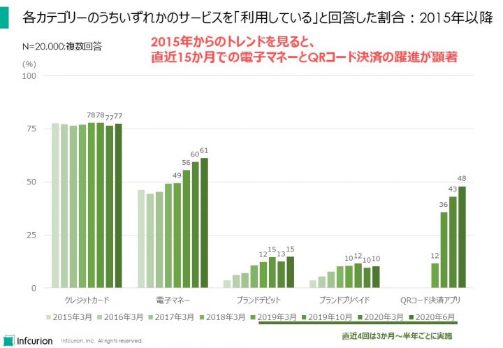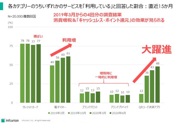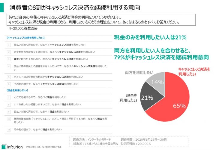 - 「日本のキャッシュレス決済の状況 ~決済動向調査2020~」、インフキュリオン・インサイト、2020年6月11日