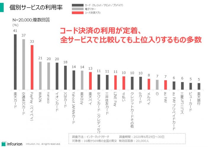 - 「QRコード決済の利用率は48%。 外出自粛期間の影響で、44%が消費行動に変化」、プレスリリース、株式会社インフキュリオン、2020年7月15日