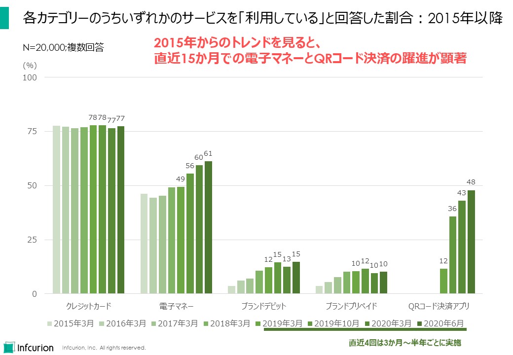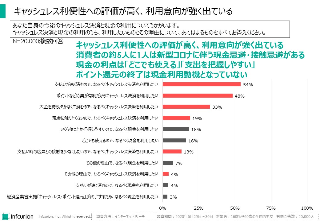 - 「日本のキャッシュレス決済の状況 ~決済動向調査2020~」、インフキュリオン・インサイト、2020年6月11日