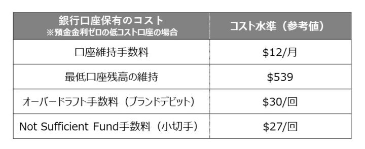 Bankrate社の2022年調査によると、口座を維持するために銀行に毎月徴収される手数料は12ドル、これは一定の口座残高を維持することができた場合の話で、その閾値は539ドルだ(表2)。
