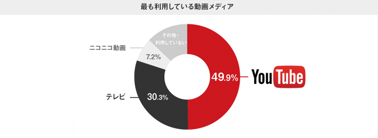 最も利用している動画メディアは「YouTube」。テレビの利用を上回る