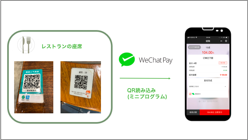 中国市内の多くのレストランでは、席にQRコードが設置されていた。お会計の際に、このQRコードをWeChat Payアプリなどで読み込むと自分が注文した料理が画面に表示され、そのままWeChat Payで支払うことができた。支払った後は店員に一声かけるだけ。このためにわざわざ伝票を持ってレジに並ぶ必要はなく、非常に便利と感じた。支払った金額の明細はWeChat Payアプリに表示されるので、いつどこで何に使ったかの確認が容易である。