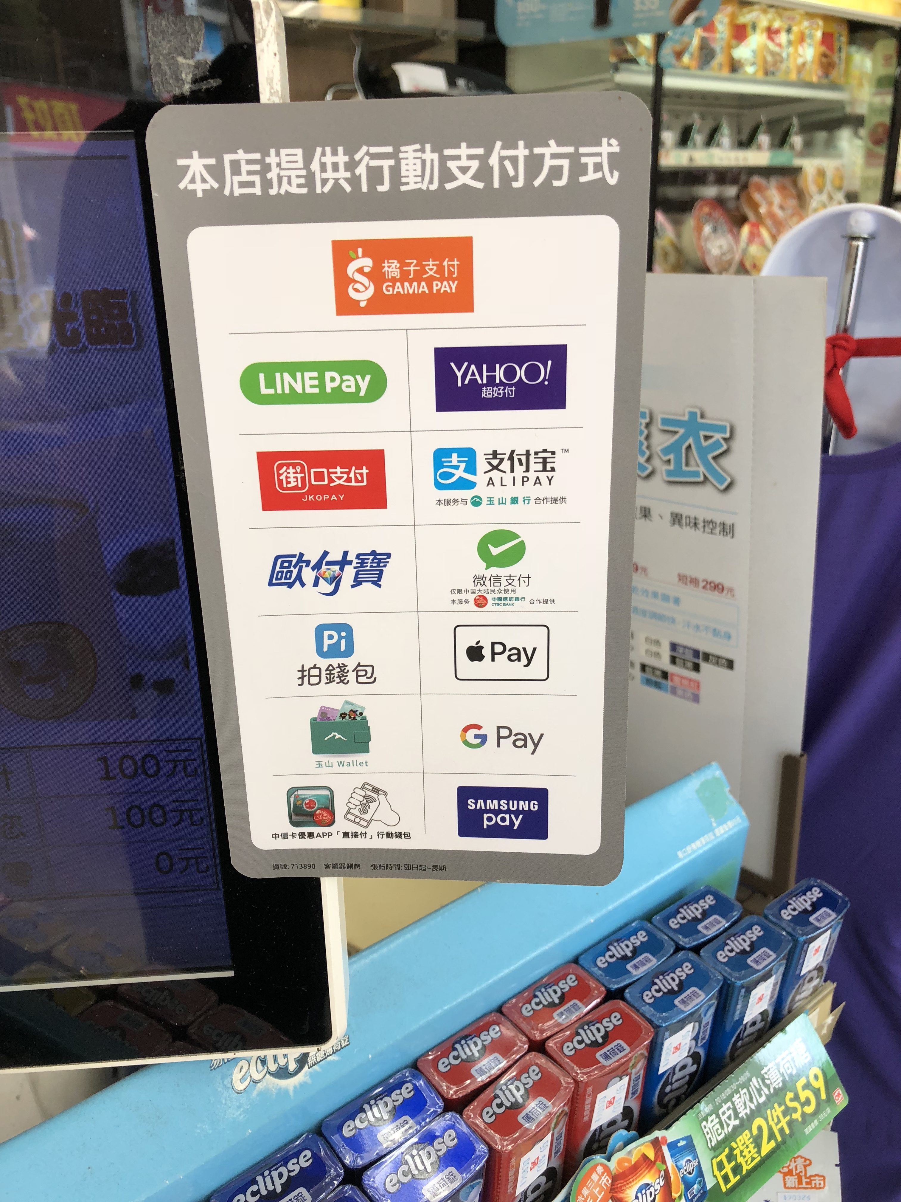 台北市内から離れたコンビニでも市内同様、各キャッシュレス決済対応だった。ただ自動販売機やレストランなどでは現金のみ支払い可能。