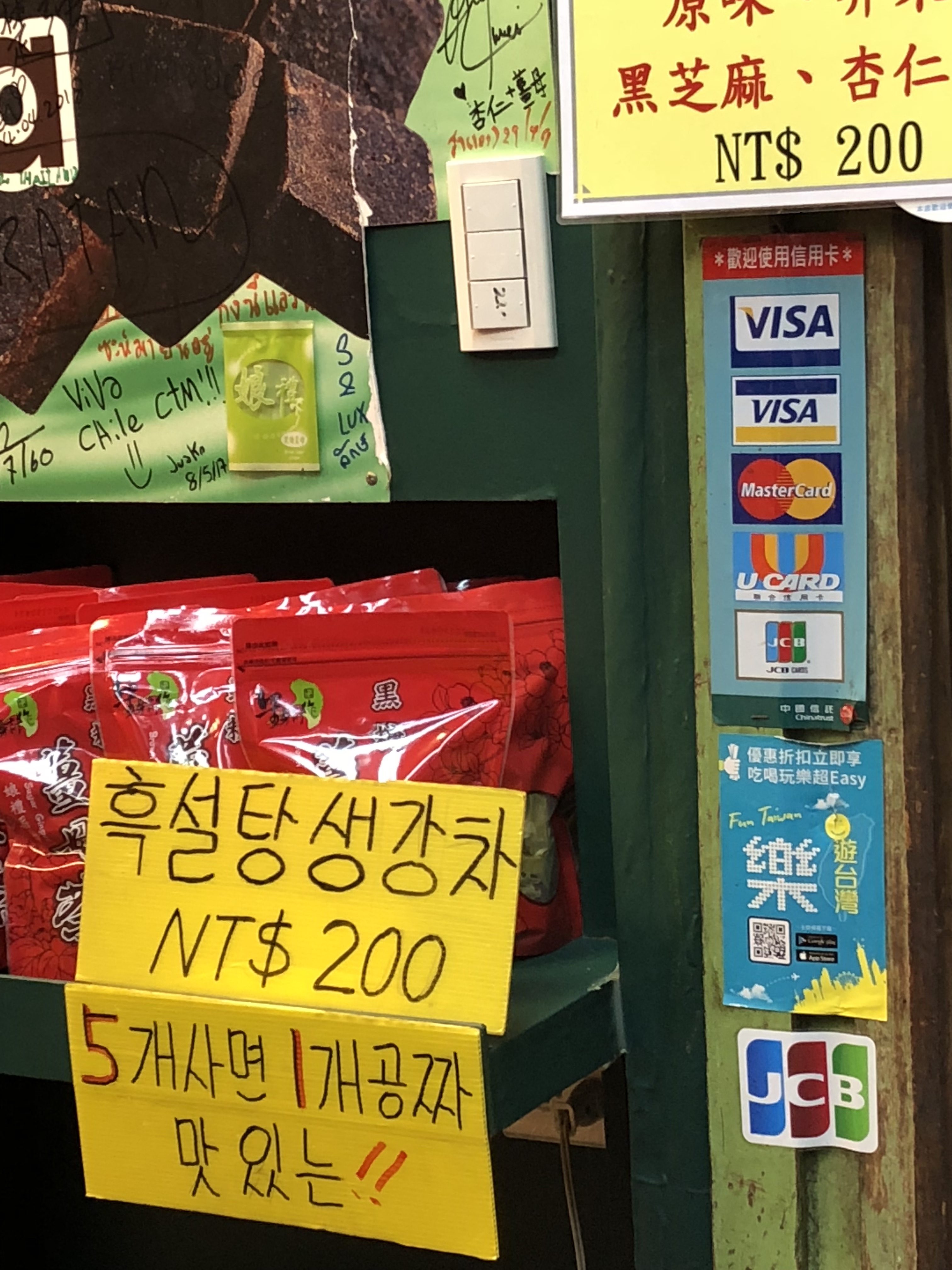 写真6,7.九份の露店の多くはQRコード、カード決済対応済み