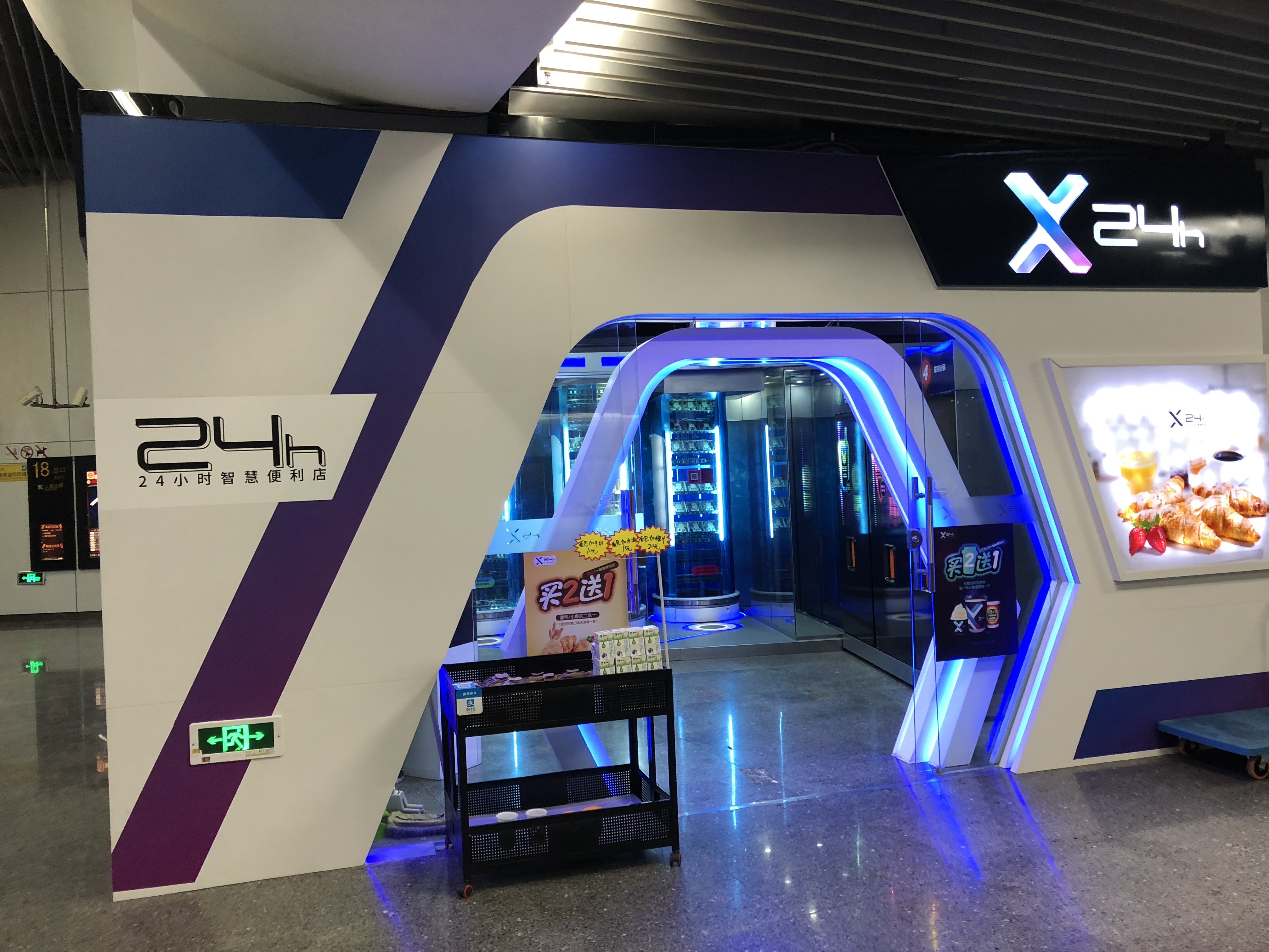写真19.駅内にあるネオンが輝くコンビニ「24h」